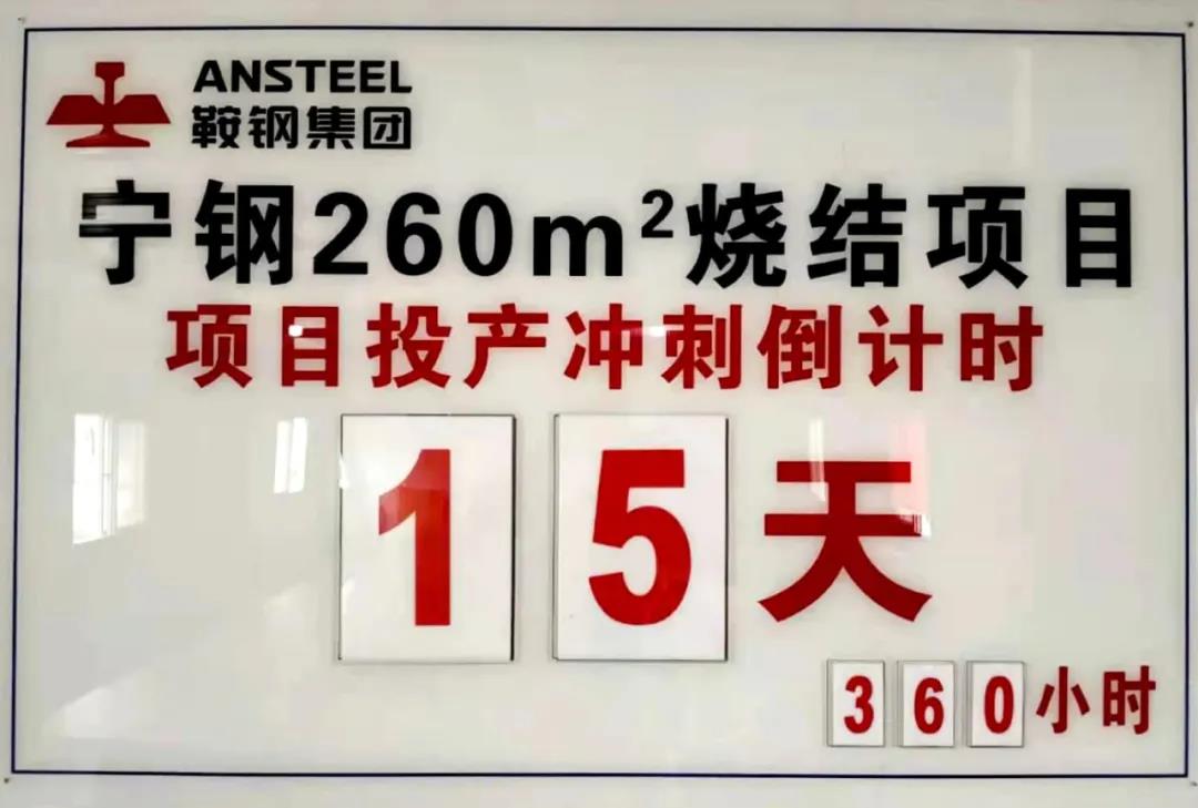 寧鋼260㎡燒結EPC工程是鞍鋼集團工程技術有限公司(以下簡稱公司)外部市場較大的單體工藝總承包工程。2021年6月份,工程進入調試階段,標志著項目整體進入了打贏寧鋼260㎡燒結工程攻堅戰的關鍵時期。從5月下旬起,項目部全體成員就一直堅守一線,為6月30日的投產目標全力沖刺。項目指揮部的墻上掛著醒目的倒計時牌時刻提醒項目部成員,項目節點就是“軍令狀”,時間刻不容緩。